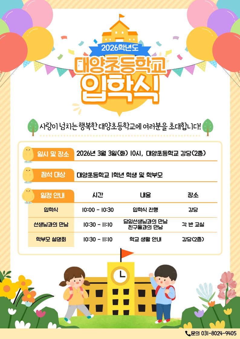 2026 대양초 입학식 초대장